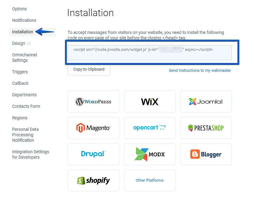 You'll need a JivoChat account before being able to access or create new installation codes for installing JivoChat on your website.