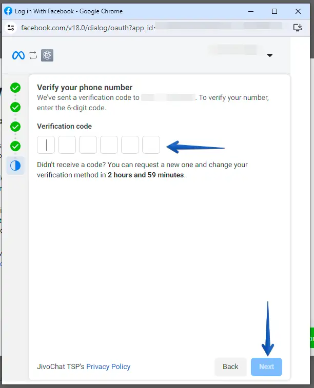 Confirm with the Verification Code you have received on your phone and press "Next"