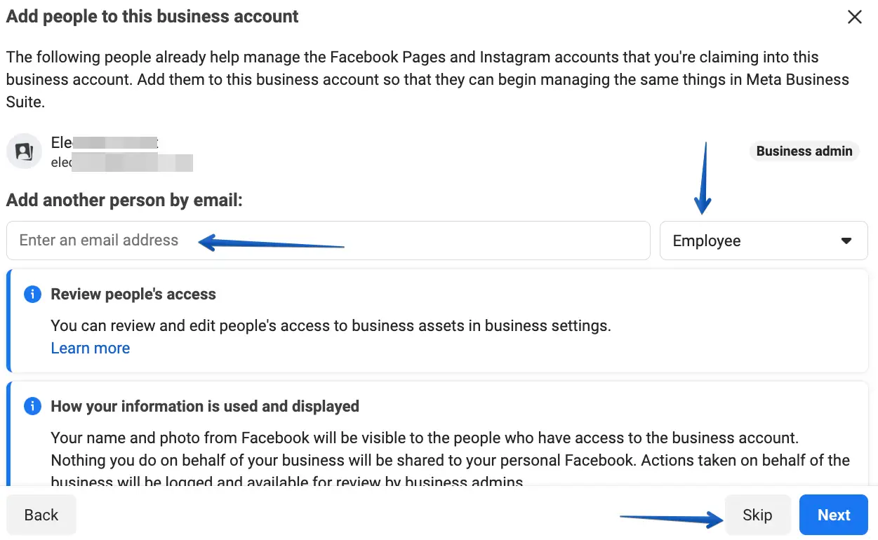 D - Press "Next" or "Add" another person into your Business Account (you can do it later)